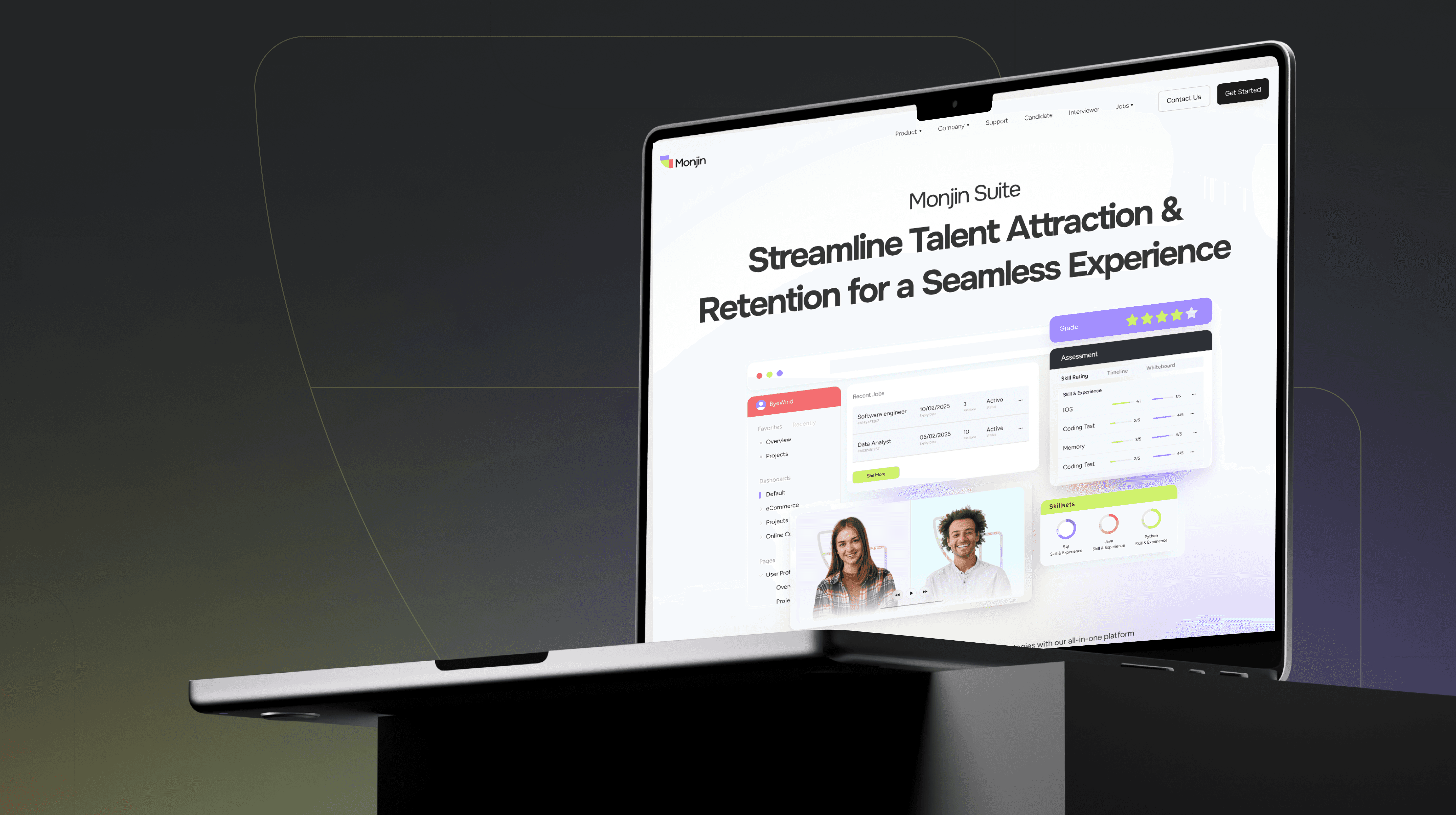 Monjin operates at the intersection of talent intelligence and interview technology, helping companies access vetted expertise through AI-assisted workflows. This project focused on refining Monjin’s visual identity and digital presence to strengthen professionalism, clarity, and brand consistency. Rather than addressing a conventional UX problem, the work centered on elevating how the brand communicates, scales, and presents itself across identity and web touchpoints.