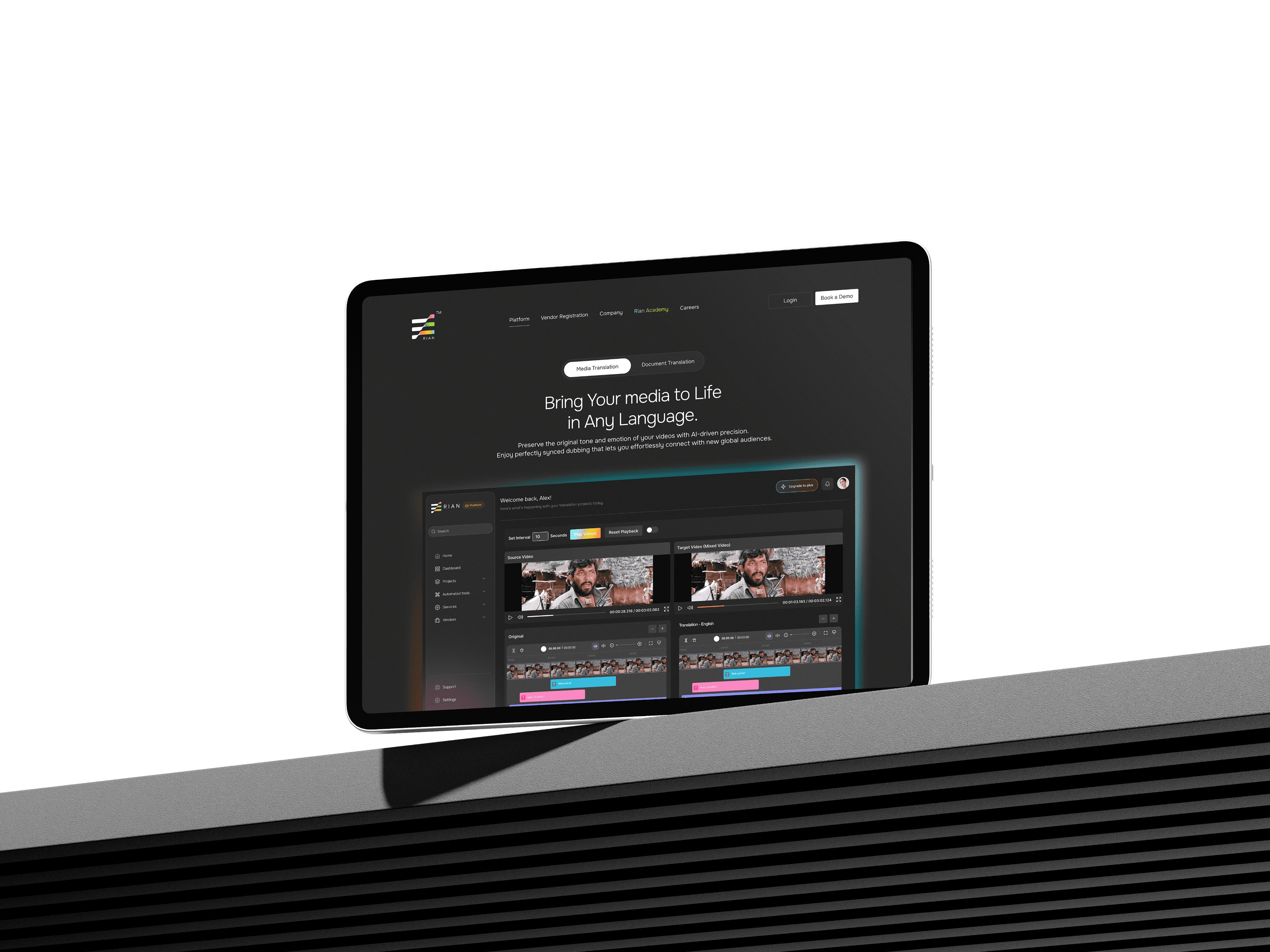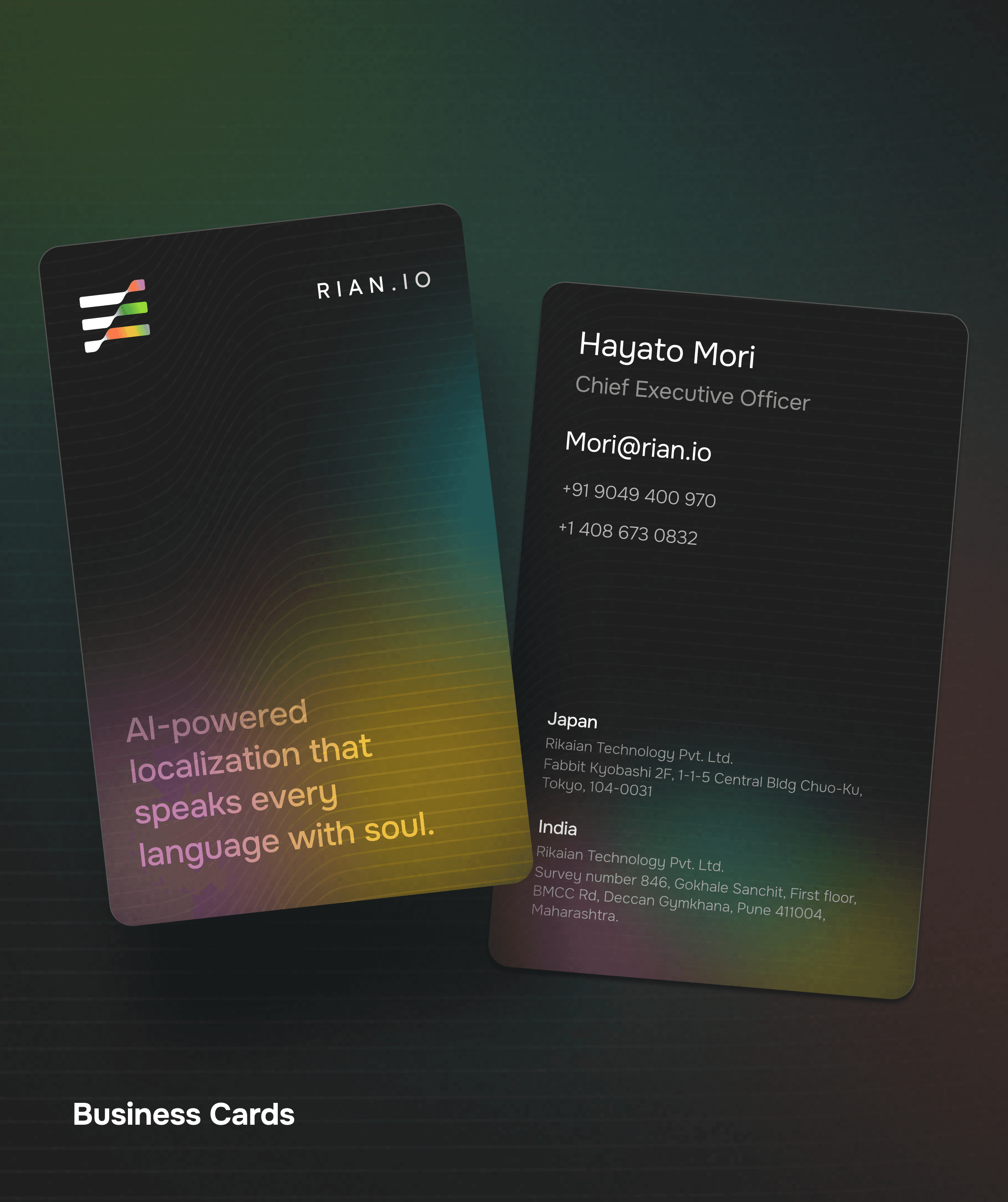 The outcome is a brand system and interface design that communicate trust, improve information clarity, and support RIAN’s positioning as a mature, globally focused AI localization company.